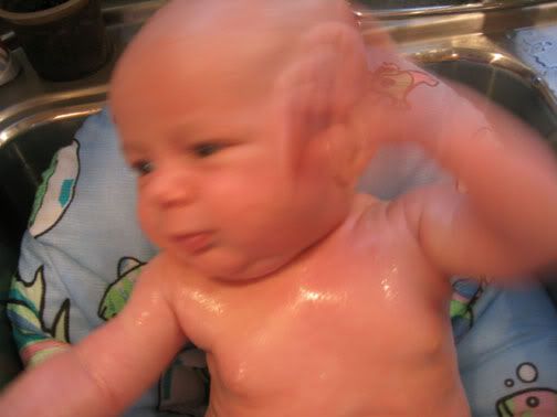 We did stay in most of yesterday, although we took a small trip to Target and Fry’s. That was the excitement of our day. And Jack had another bath. A few cute pictures came out of it. My sister in law said I wasn’t getting close enough with the camera, so these are an attempt to remedy that problem: