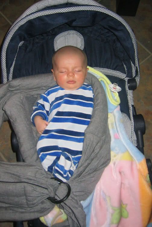 We had a better night last night. I think I realized that Jack talks in his sleep and is not necessarily waking up when I hear him make noises. He was up at one and when I went to get him he fell asleep on the way to the other room. AND he fell asleep while eating. So when I heard him again at 3:30 I just went over and put the pacifier in his mouth and patted his belly a little bit. He calmed right down and went completely to sleep and didn’t get up again until 5.