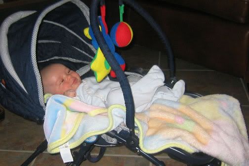 We stayed in most of the day due to rain, but by mid-afternoon I was going stir crazy so we headed out to the grocery store. Jack slept the entire time – even when I carried him out in the rain. Of course he was covered by a blanket, but I still thought he would wake up. Something about the car seat just puts him right to sleep.