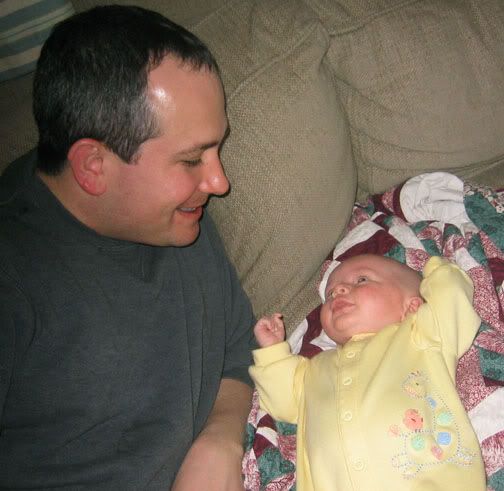 Joe got home last night and hung out with the little man before he went to bed. It’s funny to see him recognize his dad. Here they are on the couch: